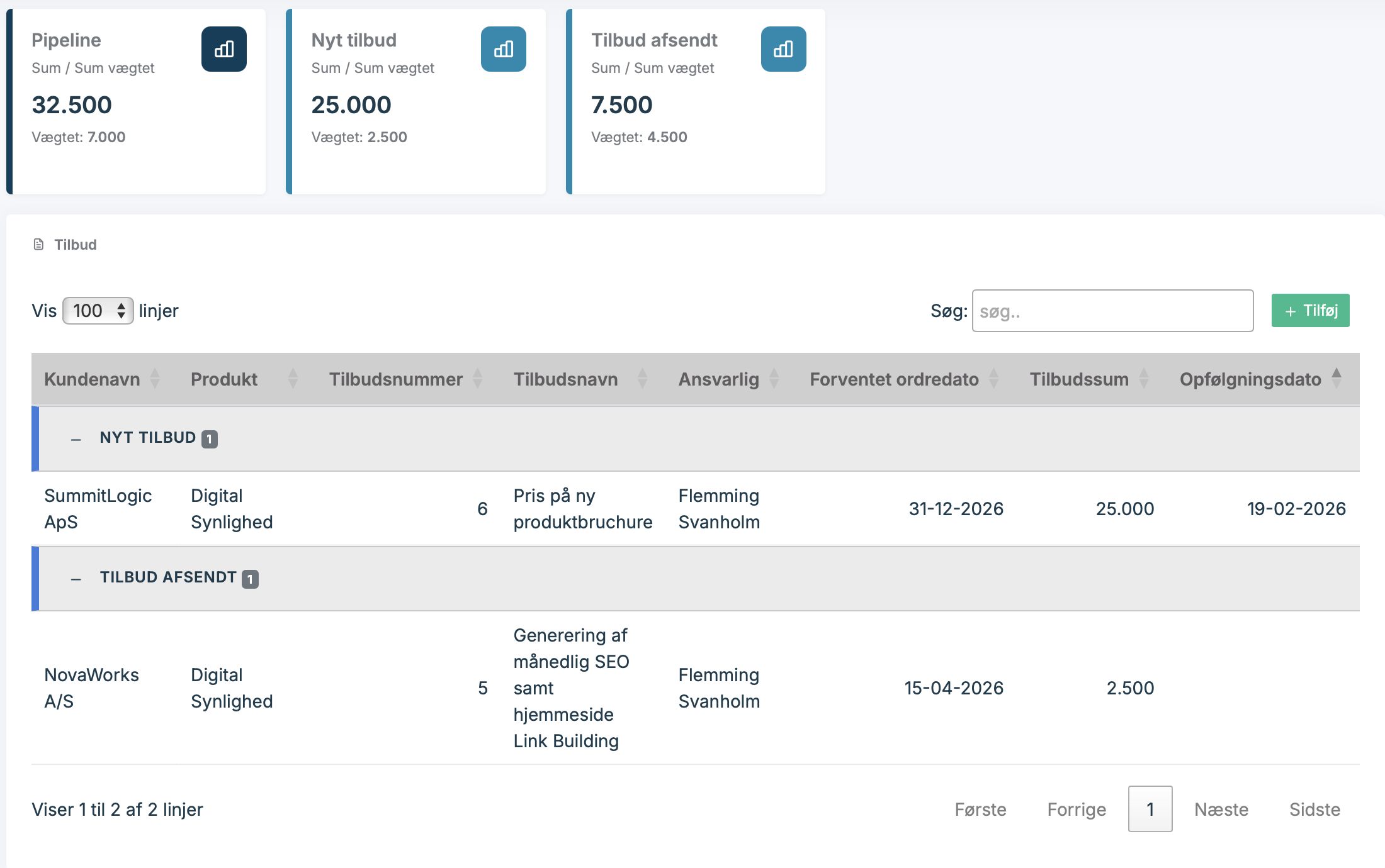 Du kan se dine tilbud og igangværende aftaler
